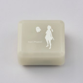 La boîte est composée d'un matériau blanc transparent laissant apercevoir les mouvements des rouages et engrenages argentés qui égrènent les magnifiques notes de Inori (Prayers).