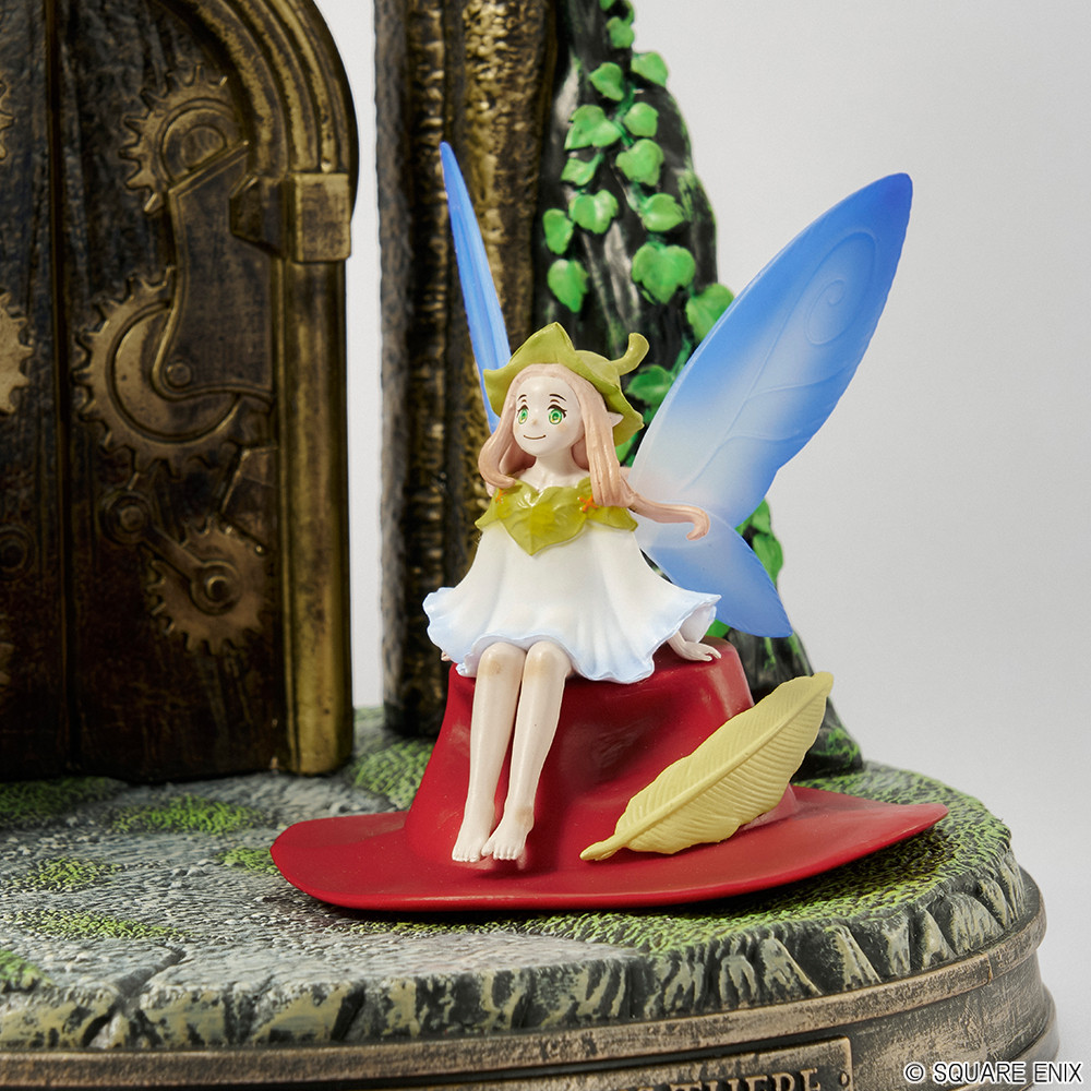 La « Porte du temps », qui relie le présent aux époques passées, est déclinée sur la forme d’une horloge à poser analogique.Cet objet de collection a été pensé en tant que décoration de type diorama, le tout orné d’une figurine de Faie assise sur le chapeau d’Elliot.Les finitions et les couleurs patinées donnent à l’horloge un aspect artisanal de haute qualité, parfait pour un ornement d’intérieur tout à fait unique !